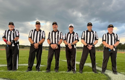 The football crew selected as the November 2025 Crew of the Month, representing the New Jersey School Interscholastic Athletic Association (NJSIAA), recently shared a testimonial that speaks to the dedication and passionate commitment of interscholastic officials, as well as the friendships and family that develop among the officiating community. The members of the crew- pictured below - are:  Rick Schober (Referee), Brian Pluta (Umpire), Steve Faramelli (Head Linesman), Gary Keyser (Line Judge), Sam Robinson (Side Judge), and Mike Hagenbuch (Field Judge).  Schober wrote: