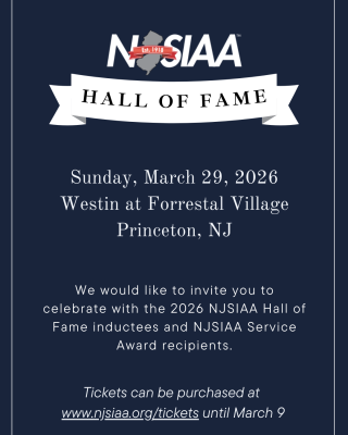 We would like to invite you to celebrate the NJSIAA Hall of Fame Class of 2026 and Award recipients on Sunday, March 29, 2026, at the Westin at Forrestal Village in Princeton. Tickets can be purchased at the link below until March 9th.