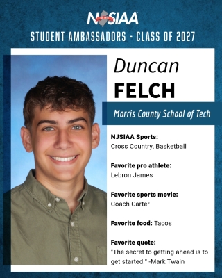 NJSIAA is excited to welcome its new class of Student Ambassadors. Get to know a little bit about Student Ambassador, Duncan Felch. NJSIAA is happy to have you on board!