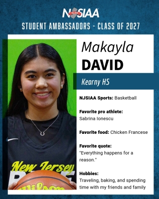 NJSIAA is excited to welcome its new class of Student Ambassadors. Get to know a little bit about Student Ambassador, Makayla David. NJSIAA is happy to have you on board!